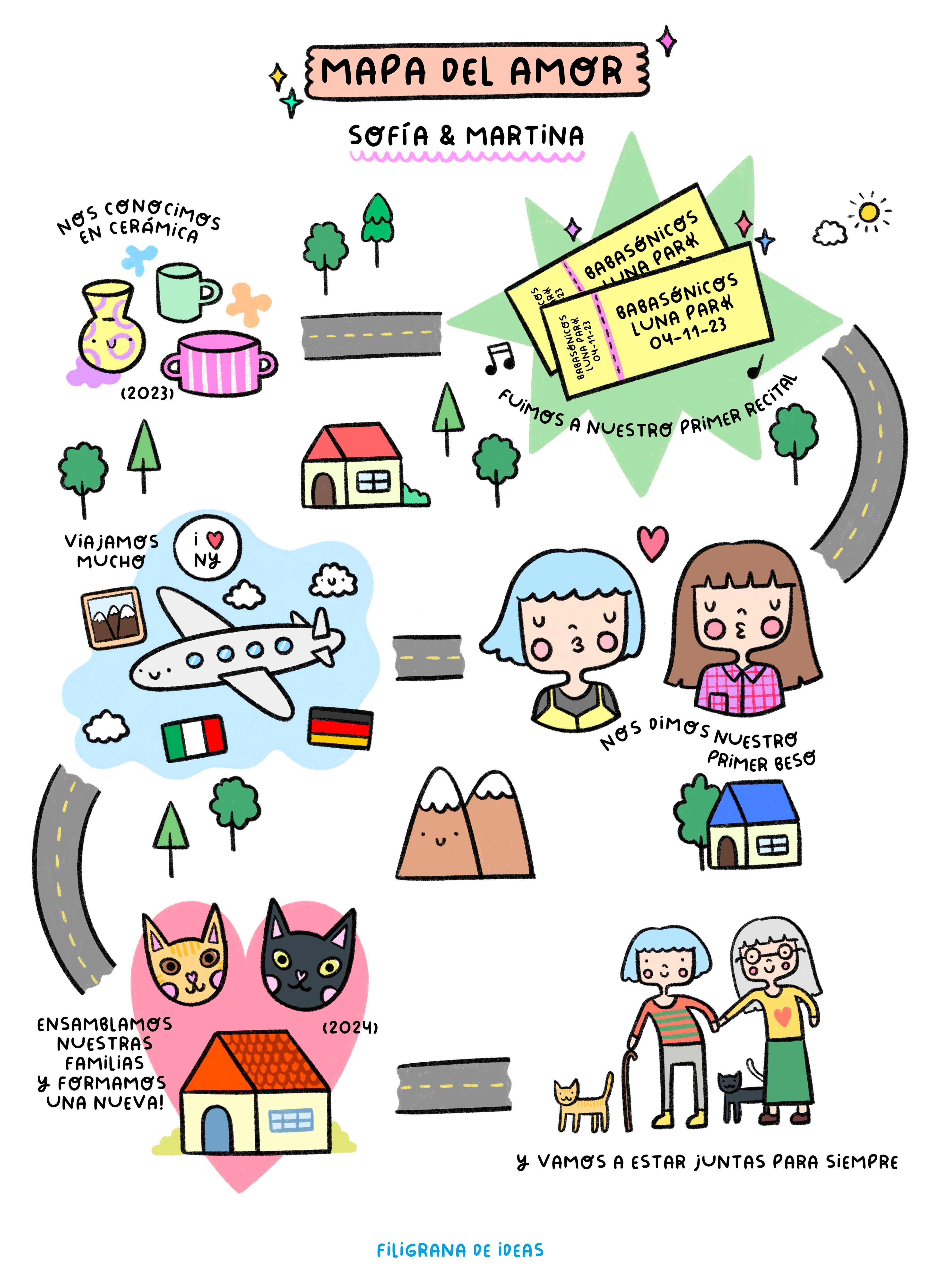 Mapa para ilustrar el camino de una relación amorosa, familiar, de amistad o con tu mascota.